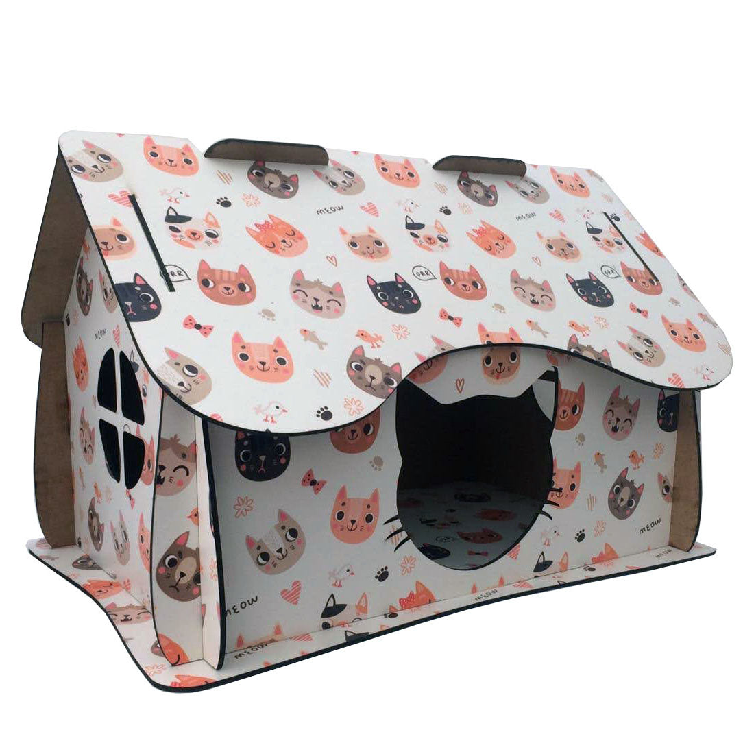 • 🐈 Das stilvolle Katzenhaus wurde mit einem speziellen Druckverfahren im Einklang mit 5 mm MDF-Holz-Faserplatten hergestellt. Ermöglicht das leichte Herumtragen von Zimmer zu Zimmer und ist dennoch sehr stabil.